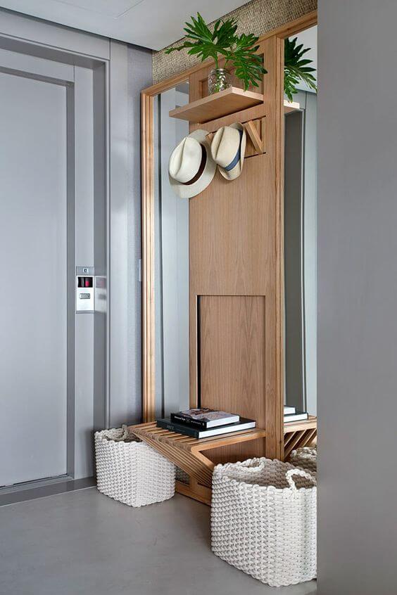 Se couber é importante ter uma cadeira nesse espaço para que você possa sentar para tirar os calçados ou mesmo apoiar sacolas quando entrar.